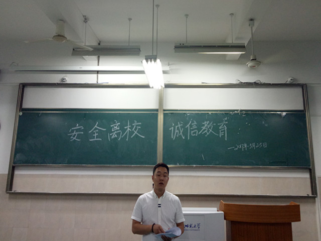 本网讯(2016级社会工作 张文逸)为了让同学们度过一个安全温馨的假期,享受美好的老员工活,2017年5月25日下午18时20分,2016级社会工作、社会学以及公共事业管理三个专业在辅导员周贤超老师的带领下,于行知楼2040101教室进行了端午节安全离校暨诚信教育主题班会。