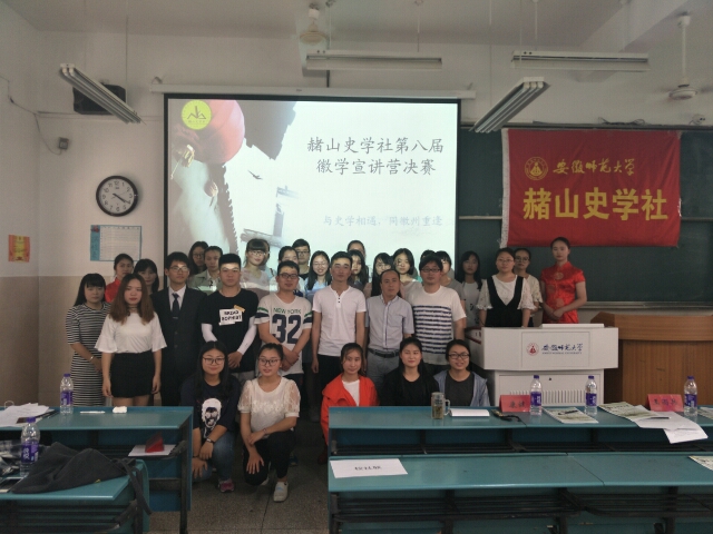 本网讯(赭山史学社 王露璐)2017年5月20日下午,赭山史学社在行知楼2040101教室举办了第八届徽学宣讲营决赛。社团邀请了康健博士,社团指导老师王建辉和公司团委社团指导老师王雨兵共同担任评委。
