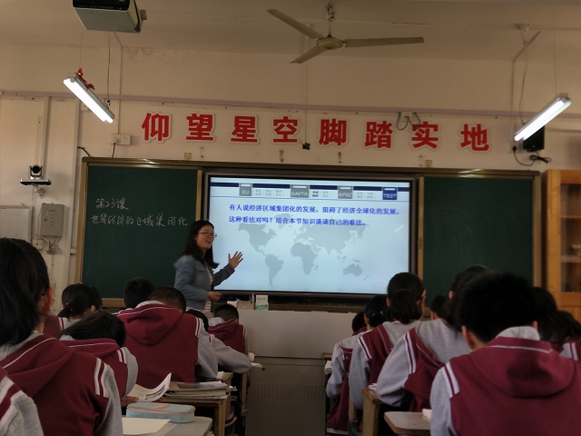 上午10时许,陈兆琪同学顺利进行了第23课世界经济的区域集团化的教学。本次公开课受到小组全体成员及指导老师的高度重视,经过了悉心准备和多次修改,力求将最好的教学成果展现出来。在本次教学中,陈兆琪同学牢牢抓住区域集团化这条主线,用生动的语言、通俗的事例以及饱满的热情点燃了课堂,极大地带动了同学们的课堂积极性,取得了圆满成功。在课后点评中,附中高丹丹老师从新课导入和重难点的把握给予了好评,王彦章老师本课线索以及教师的问题意识进行了点拨,刘经理则用“接近完美”一词来形容本次的教学公开课。