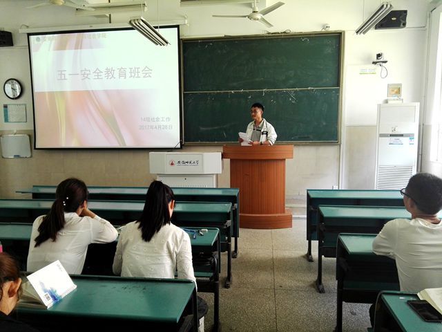 本网讯(14社工 赵亚文)为响应公司号召,加强对同学们的安全教育,使同学们度过一个平安的“五一”假期,4月30日,14级社会工作班级全体人员在2040101教室召开安全教育主题班会,会议由安全委员杨草原主持召开,全体同学参加。
