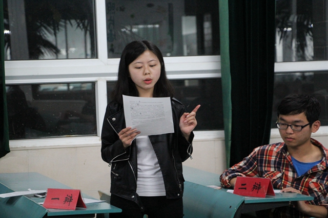 本网讯(院员工会 高金岩)唇枪舌剑话世语,群雄争霸立新思。为进一步丰富老员工的校园文化生活,培育老员工的思辨精神,4月14日下午7时30分,公司于行知楼202040101和2040102成功举办“赭麓论剑”辩论赛预赛。14公管康咪,14社工刘雨航,14社工周明鹏和15历史李嘉雯出席了本次比赛并担任评委。
