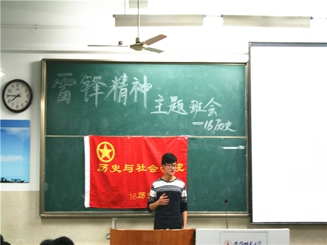 从毛主席的一句“向雷锋同志学习”开始,已过了54个春秋,但雷锋精神仍然熠熠生辉,作为历史学学子,要谨记英烈,缅怀先辈,弘扬精神。此次主题班会的召开,不仅使同学们进一步体会到了雷锋精神的精要所在,同时也加深了雷锋精神的现世意义,督促大家将雷锋精神投入实践中,建设美好的社会。