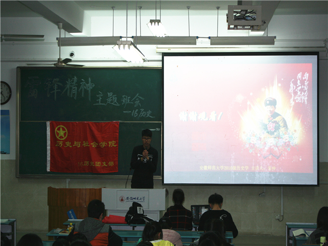 本网讯(16历史 肖舞红)雷锋精神永流传,当代学子应谨记。春分之时习雷锋,变换的不只是节气,更是学子们的精神面貌。为了响应公司学习雷锋同志的号召,3月21晚,16级历史学在2010301教室开展雷锋精神主题班会。班会由心理健康委员霍炳连主持,辅导员杨静老师及16历史全体同学参加了活动。