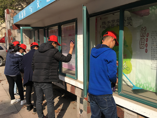 3月1日下午,16级公管班的志愿者们跟随院团委前往弋江区南瑞公共服务中心进行志愿服务活动。到达社区后,志愿者们便积极投身去志愿活动中去,进行着清理宣传橱窗、打扫社区垃圾等工作,不畏艰辛,团结协作。在劳动的过程中,志愿者们不仅体会到了志愿服务的快乐,还向社会传递了雷锋精神。