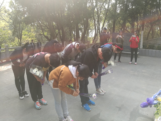 下午2点,同学们排着整齐的队伍,集体来到了戴安澜烈士的陵墓。在烈士墓下,班长曹宁首先向同学们讲述戴安澜将军的革命故事,同学们静心聆听,感受前辈的革命精神。为了表达自己的缅怀之情,同学们向革命烈士献上了一枝枝鲜花,以示崇敬之意。面对烈士墓,同学们集体默哀,进行了集体宣誓:发奋读书,努力成才,为祖国的繁荣富强时刻而奋斗着!誓词在纪念碑前久久的回荡,寄托了同学们对烈士的崇敬之情。在宣读誓词后,同学们们讨论了关于革命烈士的英雄事迹,一起游览了这座埋葬烈士英魂的烈士山,感悟前辈的革命精神,此次活动到此结束。