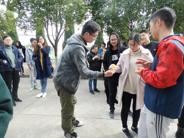 3日下午两点,同学们准时来到篮球场,在团支书邓怡晨同学讲解完比赛规则后,趣味运动会正式开始。首先进行的是“乒乓球运输”比赛,参赛者每人依靠一双筷子完成小组的乒乓球接力运输。此项比赛考验同学们的平衡感,但在同学们之中也不乏“高手”。随后进行的是“气球飞舞”比赛,站在起点和终点的人以拍、吹等方式交替接力完成传送气球。第三个进行的是“可望而不可即”,每人抱12本高中历史必修书,从1米高度线开始挑战穿过,只能从线下穿过。最后进行的是“腿力接力”,每组组员6人成一列下叉。不少女同学当场大秀“一字马”,引起旁观同学的尖叫,而男生在下叉时的搞笑体态则引得同学们捧腹大笑。整场趣味运动会在轻松愉快的氛围中和谐有序地进行,也收获了同学们的好评。比赛结束后,班长和团支书为获胜的小组颁发奖状、奖品以及特制的14历史纪念奖牌。在活动的最后,所有同学集体合影留念。在一片掌声中,趣味运动会圆满结束。