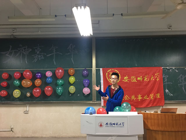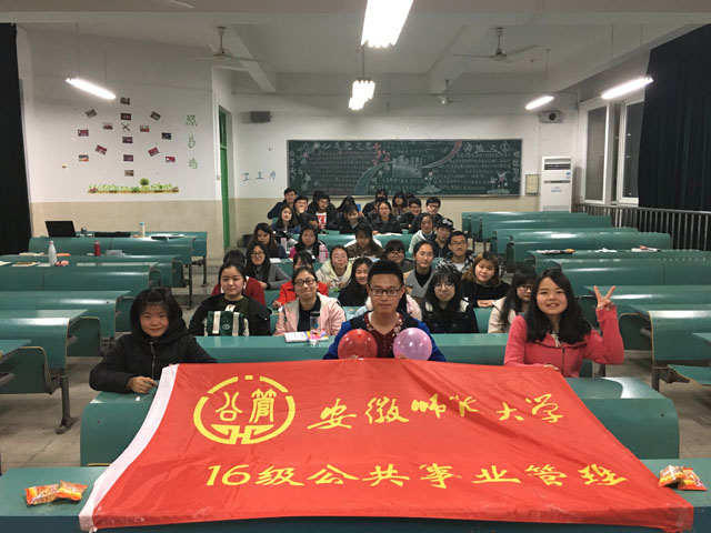 本网讯(2016级公共事业管理 崔哲明)早春三月,韶华正好。为了庆祝女生节的到来,同时丰富广大同学的校园文化生活,增强同学之间相互交流和帮助的观念,3月7日,16级公管班在行知楼2010502教室举办了女生节主题活动。此次活动由班长曹宁主持,16公管班全体同学参与。