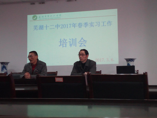 早在3月6日,芜湖市第十二中学就召开了2017年春季实习工作培训会,教务处副主任陈波老师在会上强调了实习期间的人身安全及注意事项。