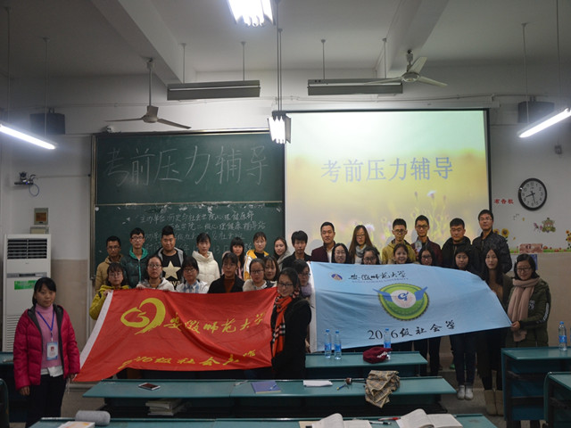 本网讯(历社公司 张文逸 严 佳)昨日因成今日果,前人栽树后人凉。为了促进新老生感情,帮助16级新生更快地融入老员工活,从容地迎接第一次期末考试,12月13日晚16级社会工作与社会学在行知楼2040102举办了考前压力辅导与新老生学习交流活动。特邀14、15级学长学姐们为大家讲解他们的学习方法,传授他们的学习经验。16级辅导员周贤超与16级社会工作、社会学全体同学参加本次活动。16级社会工作班长陈星宇主持。