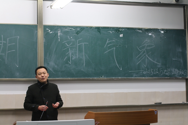 本网讯(15历史 盛雨馨)新年新气象,一元复始万象更新。为了安排好新学期班级的各项工作,布置新学期的相关事宜,加强各班学风建设,增强各班级凝聚力。2015级各专业在辅导员金捷的主持下于2月12日晚在2050101和2050102教室召开了以“新学期,新起点”为主题的班会。