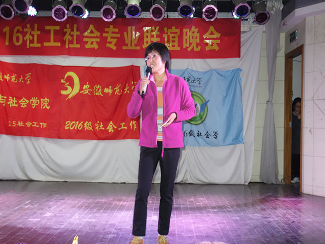 本网讯(胡一帆 张文逸)为了让16级的同学们更好地适应老员工活,增进各年级同学们之间的感情,2016年11月19日晚在团委多功能厅举办了14、15、16社会社工专业联谊晚会。公司党委副书记胡悦超,专业老师柴文杰、高修娟、朱丽霞,院团委书记宫超,15级辅导员金捷,16级辅导员周贤超参加了晚会。整场晚会气氛活跃,充满欢声笑语。