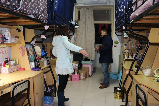 了解15级同学们的安全用电情况,普及安全用电意识是此次查寝的重点。金捷根据公司关于开展冬季员工安全用电周活动的工作方案。对15级本科生70余间宿舍进行逐一的检查。对寝室内插排用电是否规范、有无易燃物的堆放等情况进行检查。在检查的过程中,叮嘱同学们随着冬季的临近,天气渐渐变冷,是安全事故的高发阶段。同学们切忌安全用电,切勿存在侥幸心理,要从维护自身安全和同学安全的角度,认真检查生活中存在的安全隐患并及时改正。同时,寝室卫生工作也是此次查寝的关注点。在走访的寝室中,大部分均能做到地面整洁,桌面物品摆放整齐,4人的小家温馨洁净。此外,金老师还与同学就学习、生活等方面的问题进行了沟通,在轻松的谈话氛围里进一步增进了师生间的友谊。