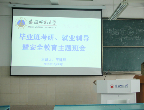 本网讯 (2013公管 刘进)10月13日下午,在2050302、2050303教室,2013级毕业班辅导员王建辉老师分别召开了四个专业考研、就业辅导暨安全教育主题班会。