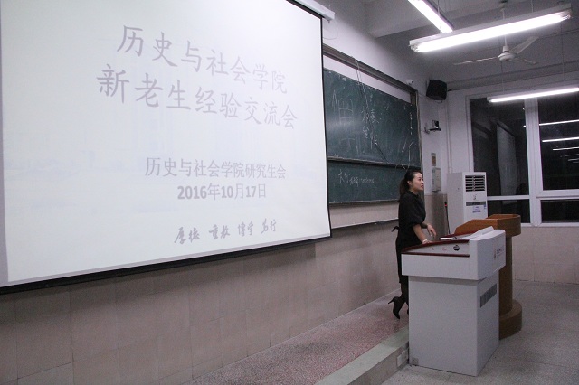 (历社公司研究生张旭)为帮助2016级研究生尽快适应研究生生活,10月17日下午,历史与社会公司研究生会在花津校区4号教学楼101教室召开了新老生交流会。2013级和2014级研究生代表出席了大会,2016级的新生全部到场参加交流会。