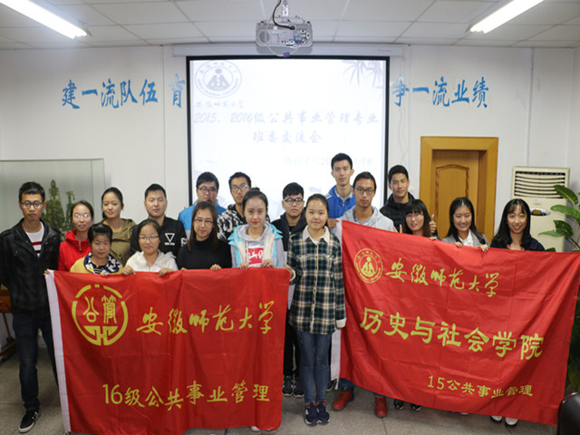 本网讯(15公管 杨玉城) 2016年11月8日晚的院行政楼四楼会议室,屋外寒风凛凛,屋内其乐融融——一场别开生面的新老班委会正热烈地举行。为进一步增进同2016级公管班的联系与交流,加强彼此之间的交流与合作,共创优秀文明班级,2015级公管班委延续传统,携手2016级公管班委举办此次新老班委交流会。交流会由15公管班长杨文俊和团支书王诗武共同主持。