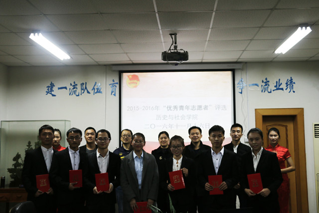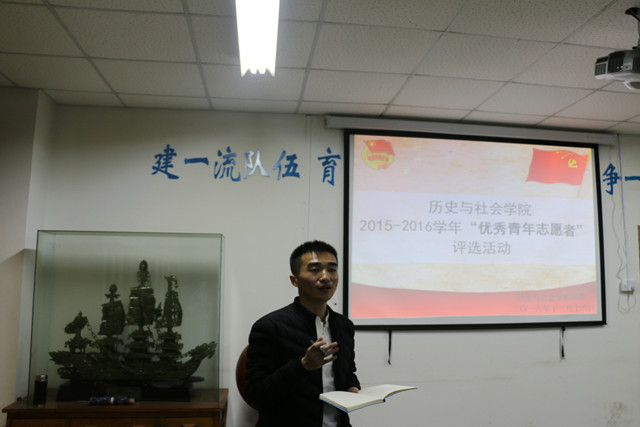 本网讯(院团委宣传部 李中文 崔哲明) 为树立志愿服务先进典型,弘扬志愿服务精神,展示青年志愿者风采,11月16日下午,历社公司在行政楼四楼会议室举行了2015-2016年历社公司“优秀青年志愿者”评选汇报会,公司党委副书记胡悦超,院团委书记宫超,2015级辅导员金捷,院员工会指导老师、2016级辅导员周贤超,社团指导老师王雨兵出席此次活动。院团委全体委员以及公司各志愿服务队代表参加本次评选会。