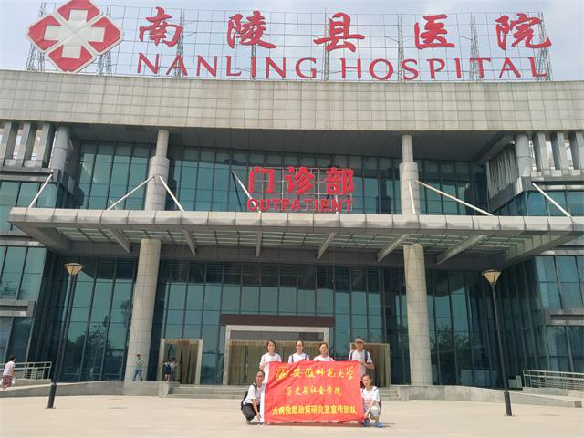 24日下午,调研团队前往南陵县县医院进行调研活动。在与院方的协调和沟通下,团队进入医院重症病房。在调研期间,团队成员分工合作,通过问卷调查和个案访谈的方式对大病患者及其家属了解他们对于大病救助政策的了解程度及其侦测政策的实施效果。为进一步提高调研的质量,调研团队在个案访谈后对部分患者宣传“大病救助”的相关政策并发放自制宣传单。团队成员的真诚志愿服务和热情的态度得到了积极的回应。
