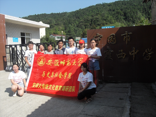 本网讯(通讯员 来逢雨)2016年8月25日早上六点钟,安师大传统文化教育调研团队的同学们便早早起来集合了,经过将近一个小时的行程颠簸,同学们终于来到了此次调研的第一站——宁国市霞西中学。开展了包括走访调研、深度访谈、实践基地挂牌等多项活动。受到了霞西中学董事长汪国荣,政教处副主任张新华等老师与同学们的大力支持,并且在一天的实践过程中收获了丰硕的成果。