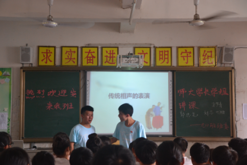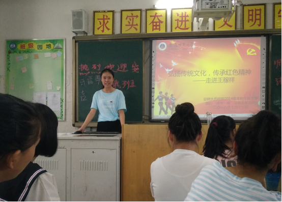 团队全体成员秉承着“关爱留守儿童,践行‘两学一做’”的信念,灵活运用精心准备的教案和活动策划,以稼祥中学八年级的139名留守儿童为对象,开展了“传统文化之相声、戏曲宣讲”、“走进王稼祥”和“中国近代史历史知识竞赛”等主题系列支教活动。
