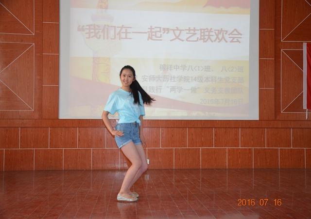本次联欢会前,团队全体成员在保证教学质量的前提下,利用休息时间,冒着高温加紧各项文艺演出项目的排练。同时,团队成员积极和稼祥中学的同学们展开交流,鼓励同学们在联欢会上大胆展示自己,并给予他们极大的帮助。