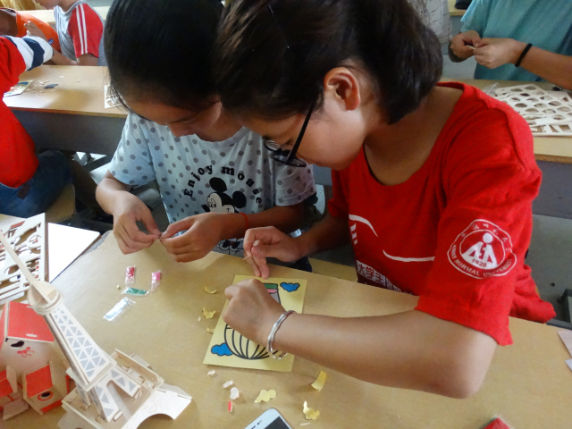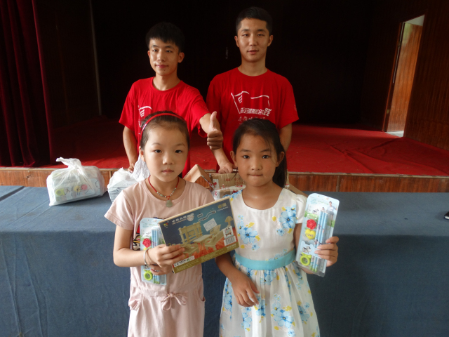 在手工制作的过程中,同学们热情高涨,相互配合,分工合作。团队成员们秉承“授人以鱼,不如授人以渔”的原则,自己指导,多让孩子动手,提高合作意识,培养动手能力。听着稚嫩的声音呼唤着“哥哥,姐姐”,志愿者们也开心的笑了。经过大家的共同努力,各个小队都在四十分钟内完成了任务。为了鼓励孩子们发扬合作精神,坚持自我动手能力,团队除了设置优秀奖外还设置了鼓励奖,队员们为孩子们颁发奖品,最终大家和手工作品一起拍照留念。