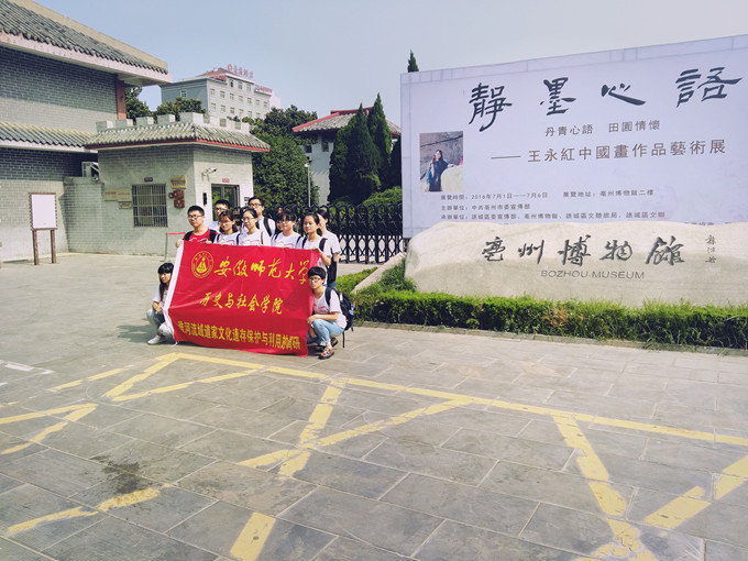本网讯(杜宇)2016年7月5日上午,历社院赴亳州淮河流域道家文化遗存保护利用调研团队一行人来到了亳州市博物馆,受到了亳州市博物馆的热情接待。