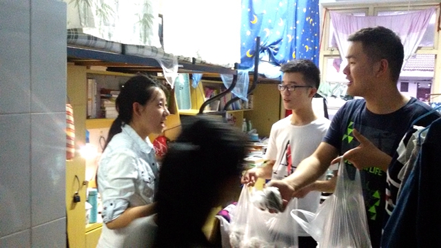 端午节前夕,14公管班干部为全班同学购置了粽子,去到宿舍送至每位同学的手中,拿着热气腾腾的粽子,感受14公管的温暖,即使身在异乡也不再觉得孤单,因为我们是一家人。