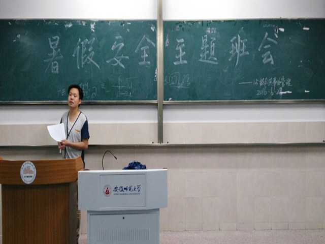 (本网讯)随着本学期的期末考试接近尾声,暑假的脚步也渐渐临近。为提高15级各专业员工暑期安全意识,守住安全底线,同时确保各班员工离校工作全面细致的落实,严格把住安全关,从而让同学们度过一个平安、愉快的暑假。2015年6月28、29、30日晚,15级各班分别在2050101、2050102、2040101、2040102教室召开了以“暑期安全教育”为主题的班会,班会由15级辅导员金捷老师亲自主持。