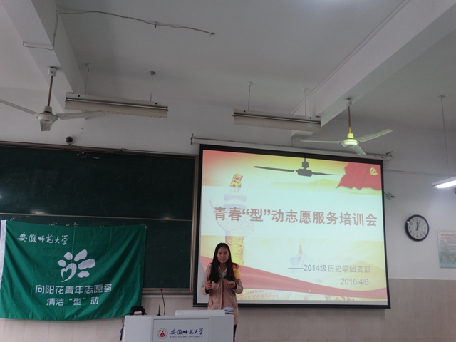 本网讯(2014级历史学 楚子轩)青春“型”动开展五周以来,14历史学清洁“型”动队在班级团支部的领导下,召开培训会三次,队员累计参与志愿服务10次,总时长超过100个小时,完满完成了民主大道的清洁任务,获得师生的一致肯定,校团委副书记张园园在全校团委例会上提出表扬。4月26日中午,“型”动队在二食堂门口组织横幅签名活动,结合历史学专业特色进行汉服志愿宣讲,号召同学们爱护校园环境,共建美丽师大,在广大师生中间产生了积极广泛的影响。