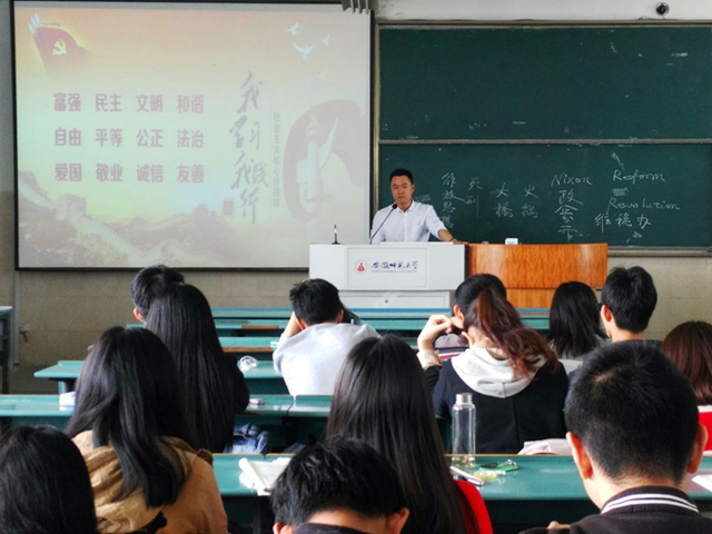 活动主要分为两个环节。第一环节由周贤超老师向大家作关于社会主义核心价值观内容的解读。第二环节由班长郭忠尧同学进行同学们“梦想”的收集。