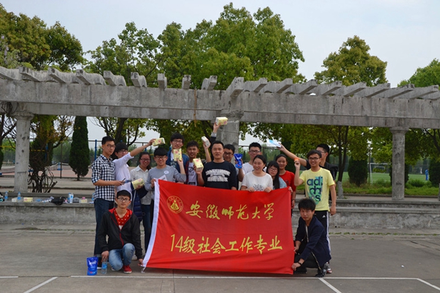 本网讯(2014级社会工作 赵亚文)为了丰富同学们的课余生活,加强同学们的体育锻炼,增进同学们的合作意识,4月13日下午,2014级社会工作专业员工在南体育场篮球场举行了以“生命在于运动”为主题的春季趣味运动会。周贤超老师全程参与,与同学们在春意盎然的4月天一起挥洒汗水,激扬青春。