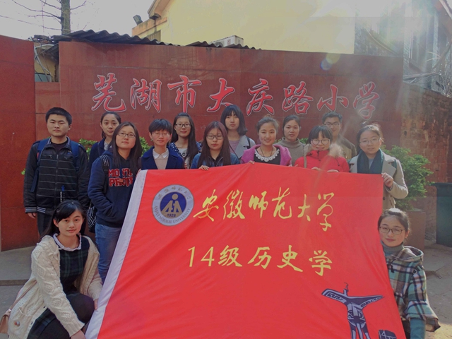 本网讯(2014级历史学 丁宇、楚子轩)在全校倡导用行动学习雷锋精神的氛围下,为进一步加强老员工社会实践能力与社会素质拓展。2014级历史学在辅导员宫超老师和团支部成员的精心组织下,建立了一支16人的志愿者团队,前往芜湖市大庆路小学,进行关于安全知识的支教活动。