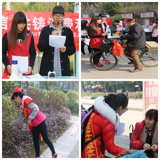 3月16日下午,15级公共事业管理专业的员工来到柏庄春暖花开小区开展以“消费和谐与诚信”为主题的志愿宣讲活动。他们以小组为形式同时开展志愿宣讲、传单发送和义务清理,成员们团结一致,保质高效,以身作则,为树立温暖善良的历社人形象做着点滴努力。