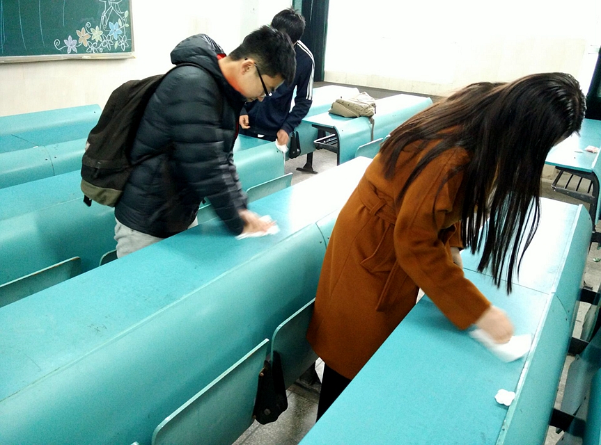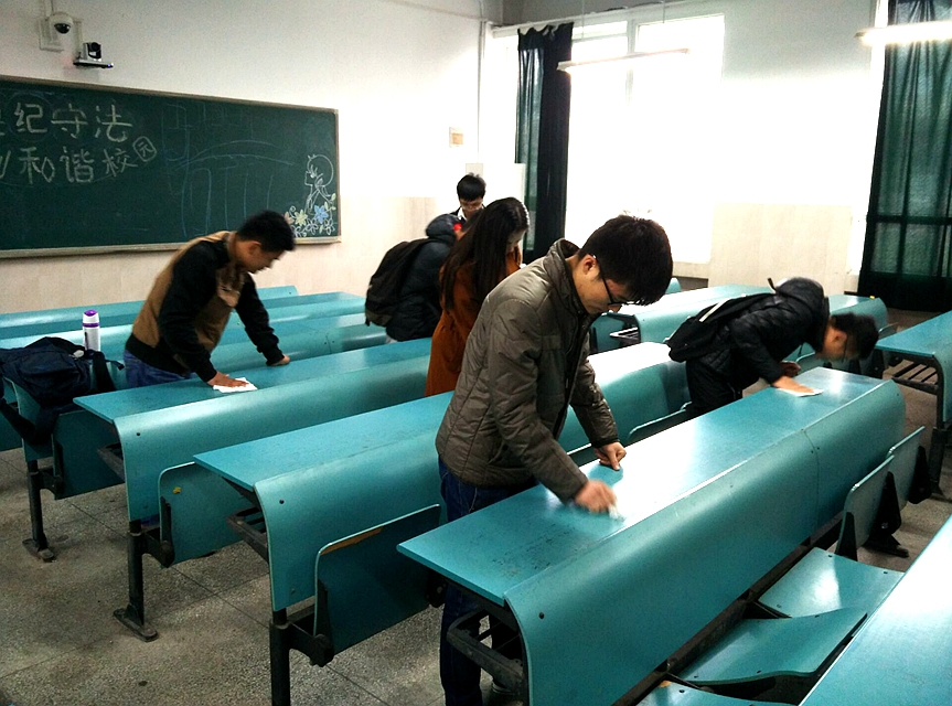 3月15日下午,大家集合完毕后,首先,由班长带头号召了大家积极参与活动,学习雷锋精神;随后,各个班委也都做了简短的谈话。大家一致认为教室是同学们学习的主要地方,为了使公司的同学们有更干净整洁的学习环境,14公管的同学们决定在行知楼尽自己一份薄力为大家打扫教室卫生。