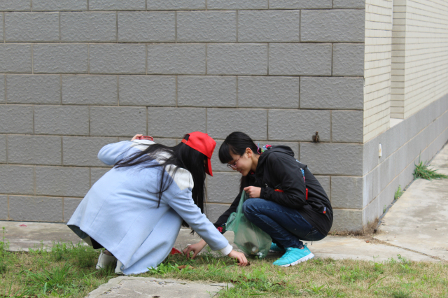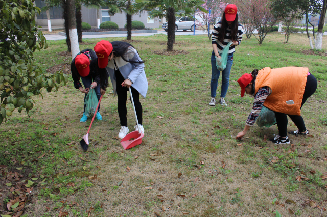 上午9时,志愿者们在32栋宿舍楼楼下集合完毕,一同前往位于花津河畔的历史与社会公司绿化责任区。在熟悉了责任区的范围和进行了活动分工之后,志愿者们便开始清理绿化带的垃圾、碎石以及灌木丛上的落叶。他们一手拿着垃圾袋,一手捡拾草坪上的垃圾、石块和落叶,捡拾起来的落叶还被放在灌木的根部以增加土质肥力。责任区里垂柳枝头正绿,桃花颜色正浓,劳动中的志愿者不但享受着志愿服务带来的收获和满足还欣赏了一番师大美丽的春景。随后志愿者们按计划开始拔除杂草,他们三两个自成一组,在草坪上找寻并拔除杂草。志愿者们最后一同巡查了责任区,将几棵歪倒的小桃树扶正,并再次确认了一遍责任区环境的清洁。上午11时许,养护工作在志愿者们高涨的劳动热情中圆满完成,大家以美丽的责任区为背景合影留念,养护活动圆满结束。