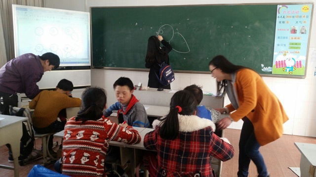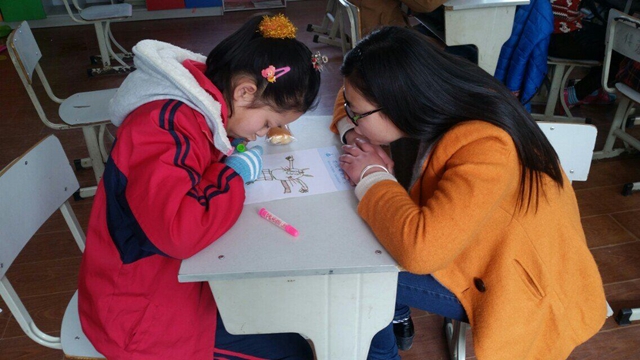活动伴随着“学习雷锋好榜样”的歌曲大合唱开始。合唱结束后,盛雨嘉同学通过播放动画的形式讲解雷锋精神的内涵,告诉他们什么是勤俭节约,互帮互助,无私奉献。并通过奖励的方式提问发生在他们身边的好人好事有那些?活动最后是教他们画画,没有对事物具体的认识,但是在志愿者的帮助下他们却画的异常认真。