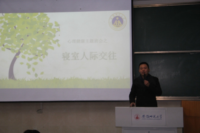 (本网讯 15公管 杨玉城)2015年12月17日晚,为促进寝室室友之间和睦相处,共建和谐友爱的文明寝室,避免寝室人际交往危机以及推进寝室民主生活会的开展。15级公管班在行知楼2010304教室举行了一场寝室关系主题班会,由金捷辅导员亲自担任宣讲人,15公管班全体同学以及15历史班心理健康剧相关演员参加了本次班会。