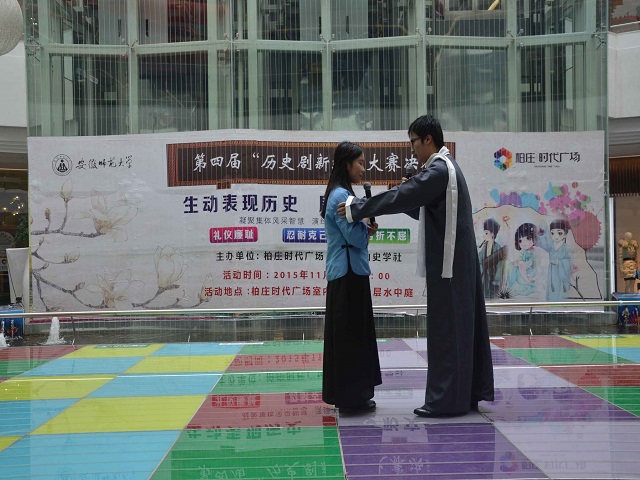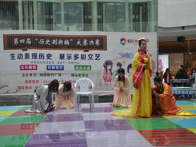 (赭山史学社 朵金峰讯)2015年11月29号星期日,备受瞩目的第四届历史剧新编大赛决赛分别在柏庄时代广场和团委多功能厅二楼隆重举行。此次决赛吸引了数百名市民前来观看,整个过程高潮迭起,精彩不断,带给了观众耳目一新的视觉盛宴,并最终完美落下帷幕。