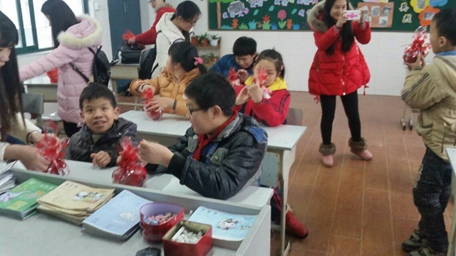 本网讯(2014社会学 李玉雪)梦想与陪伴同在,爱是最美的语言。智障儿童这是一群折翼的天使,他们对这个五彩斑斓的世界认知就是只要你愿意分享你的一点关爱,他们就会投以你天真烂漫的笑脸。12月24日在全世界都在分享来自圣诞的喜悦之时,14社会学想用自己实际行动和这群特殊孩子们一起分享我们的快乐。