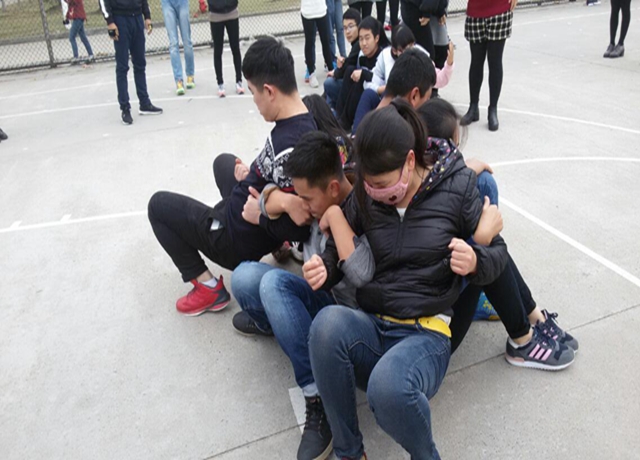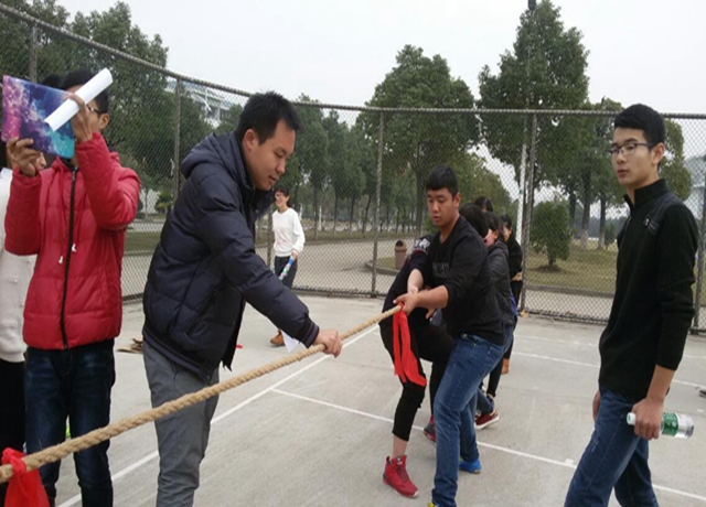 上午9点左右,寒意未散,但有关班委仍提前带好了活动材料来到场地。9点半,全体班委在篮球场集合完毕后,15级班委联谊活动正式开始。联谊活动的第一个趣味游戏是“摸石过河”。各班班委选手跃跃欲试,都积极地“操练”了起来。“开始!”随着金捷老师一声令下,各组选手身手敏捷,直向终点。最后,实力强劲的公管班委获得胜利。紧接着是“仙人指路”游戏,选手们蒙住双眼在队友的指引下绕过“重重障碍”。有的选手却不听“指挥”而“横冲乱撞”,引得在场同学哈哈大笑。最终社工班委以犯规次数最少、用时最短赢得胜利。“仙人指路”之后便是颇有技巧的“传递呼啦圈”和“坐地起身”游戏。只见各班班委聚成圈,各抒己见,商讨试验方法,气氛活跃。经过激烈角逐,社会班委用时最短获得传递呼啦圈的第一名;公管班委则在规定时间内坐地起身人数最多获得第一。随后进入最后一个游戏——拔河。激烈的比赛过程将联谊推向高潮。各队代表屏气凝神,双脚抓地,紧攥麻绳,同时狠盯着代表中点的红绳节,使劲将它拉向自己一方。围观的同学更是竭力地呐喊加油,现场之激烈令人印象深刻。最终历史班委代表“力挽狂澜”,勇得第一。在最后的统分中,公管班委以总分最高位居第一,历史和社会班委并列第二,社工则屈居第三。随后金捷辅导员为获得各名次的班委颁发了奖品并合影留念。