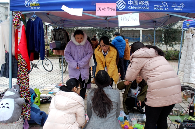 本网讯 (院员工会 李诗佳)为弘扬勤俭节约的时代主旋律,增强同学们环保意识,进一步丰富校园文化生活,12月12日上午,院员工会在一食堂南侧小广场开展跳蚤市场活动。
