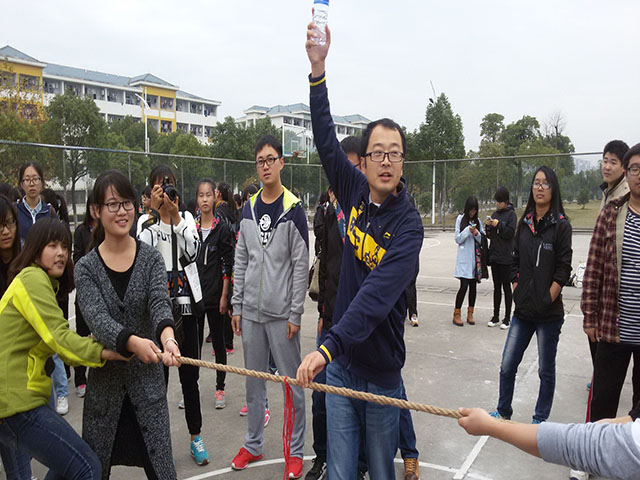 本次比赛由宫超老师主持。比赛前,2015级历史系的二十余名女生磨拳檫掌,互相加油鼓劲,积极做着热身准备。在宫超老师的一声令下,选手们奋力拼搏,每一个人鼓足干劲、平息凝神将全部的力量都灌注在拔河绳上,一心为班级的荣誉而顽强拼搏;场外的拉拉队们用力呐喊助威。