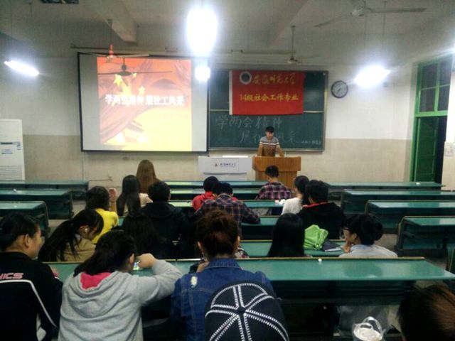 为了深入贯彻两会精神,加强老员工思想道德建设,促进老员工与先进思想保持一致,11月6日14级社会工作专业在2010502教室召开学习两会精神的主题团会,会议班长郭忠尧主持,团支部书记吴晶晶做主要发言。