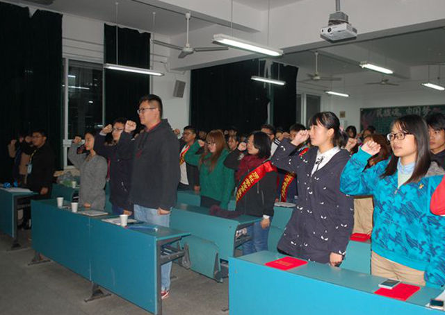 晚上6点,大会在激扬的中国青年志愿者之歌的旋律中拉开序幕。首先,由青年志愿者服务队负责人刘金金作近四周的志愿工作总结并宣读青年志愿者章程,规范大家牢记使命,做到尽职尽责。紧接着由新老志愿者代表作感悟发言,去年优秀志愿者代表贺阿静在分享经验的同时希望新一届志愿者们能再接再厉,秉承使命,将志愿精神长久传递。新志愿者代表邓陆以声情并茂的发言表达了对志愿工作的热情和决心。在志愿者代表杨玉城的带领下,全体志愿者右手握拳,庄严宣誓,以实际行动践行志愿服务队伍的良好建设。