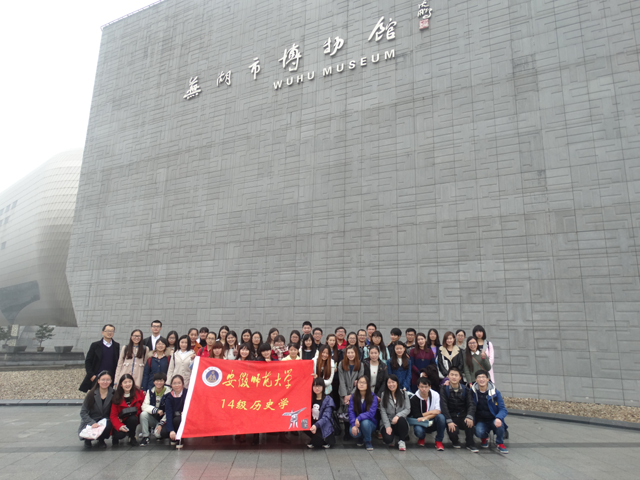 本网讯(14级历史学丁宇、楚子轩)为响应校团委“走下网络、走出寝室、走向操场”的号召,帮助同学们更好地了解芜湖特色历史文化,激发同学们的专业认同感,14级历史学班委会于11月22日上午组织同学参观学习了芜湖市博物馆、规划馆,辅导员宫超和六十余名同学一起参加了此次参观学习活动。