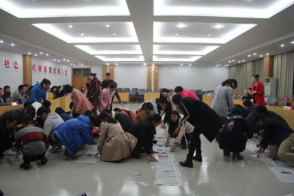 (历社公司 马晨皓 吴皓)为进一步增强2015级研究生的团队协作能力和身体素质,加强班级成员之间的交流合作。2015年11月20日晚6点,历史与社会公司2015级研究生班级素质拓展游戏会在老员工活动中心举办。研究生辅导员王平子老师以及2015级全体研究生参与了此次活动。