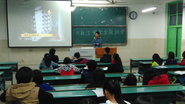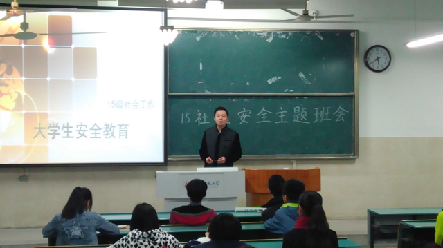 本网讯(15级社工 唐宇晴)学习诚可贵,生命价更高。为了增强同学们的安全防范意识,加强安全教育工作,15级社会工作全体同学于2015年11月21日在2010502教室开展了一场安全主题班会教育。