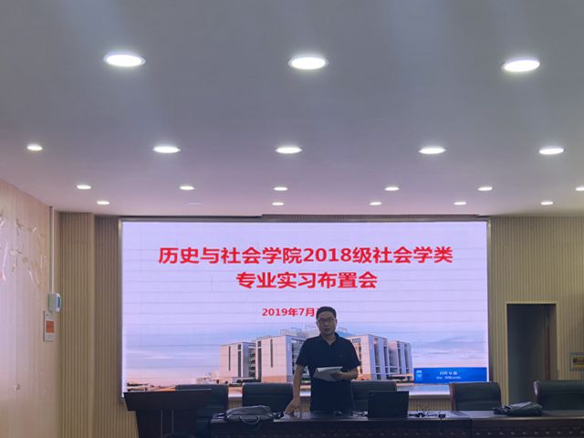 本网讯(周风) 为帮助同学们更好地熟悉最新的专业实习时间和形式的安排,2018级社会学类专业于7月4日下午三点在公司二楼会议室召开专业最新的实习工作布置会。专业主任路幸福老师、仇凤仙老师、辅导员韩雪及2018级社会学类班级全体同学参与本次实习布置会。