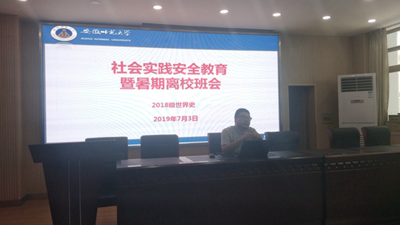 本网讯(18世界史 华婉蓉)为了让员工能够平稳地告别大一,度过一个安全又充实的暑假,7月3日中午十一点半,辅导员赵发召集2018级世界史专业员工在公司楼二楼召开了“暑假安全离校主题班会”。