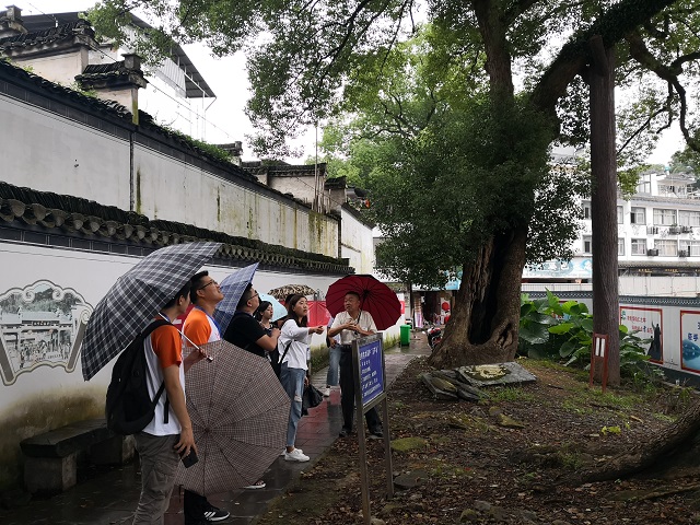 本网讯(刘金金 杨文姿)7月8日,在歙县的烟雨氤氲中,调研团队来到了深渡镇进行实地考察,对徽商在新安江流域的商业活动进行了深度了解。